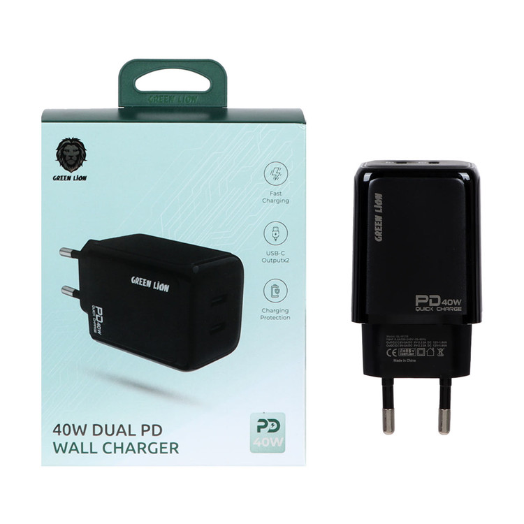 شارژر دیواری فست و PD دو پورت Green Lion مدل GNPD40WEDWCBK 40W - مشکی (گارانتی 18 ماهه شرکتی)