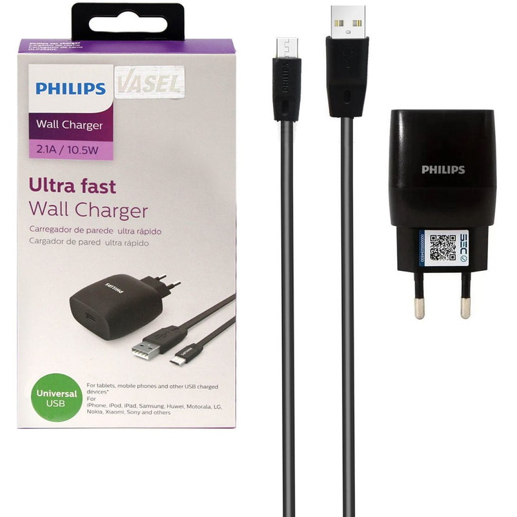 شارژر دیواری 10.5W تک پورت Philips مدل DLP2310UB به همراه کابل شارژ اندروید - مشکی
