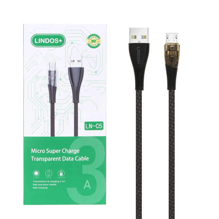کابل شارژ فست اندروید +Lindos مدل LN-C5 - مشکی (OpenBox)
